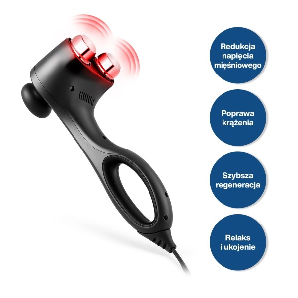 5 рівнів інтенсивності, функції охолодження, функції нагріву, кріорською терапією, полегшенням болю та м’язовим тоном, регулюванням швидкості масажу, потеплінням, світлодіодним дисплеєм