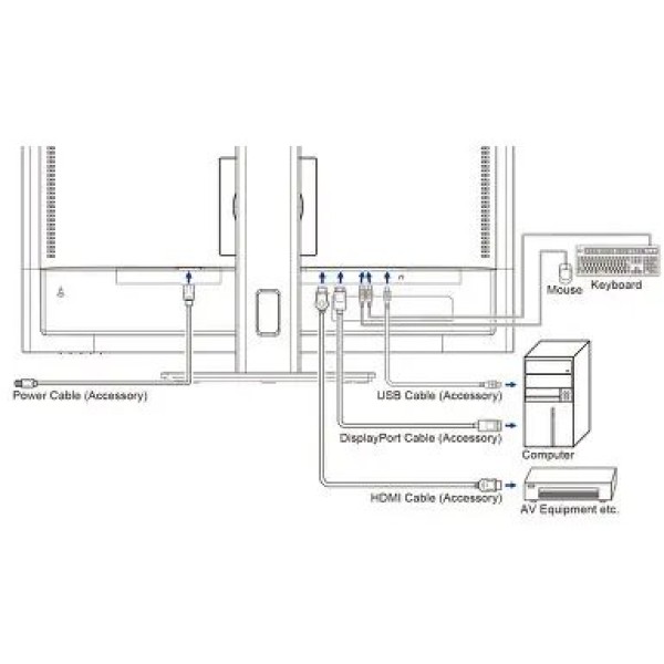посібник користувача, кабель DisplayPort, кабель HDMI, кабель USB, кабель живлення, підставка