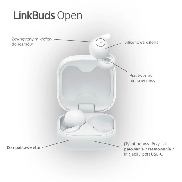 Бездротові навушники Sony LinkBuds Open WF-LS910W Bluetooth 5.3 white