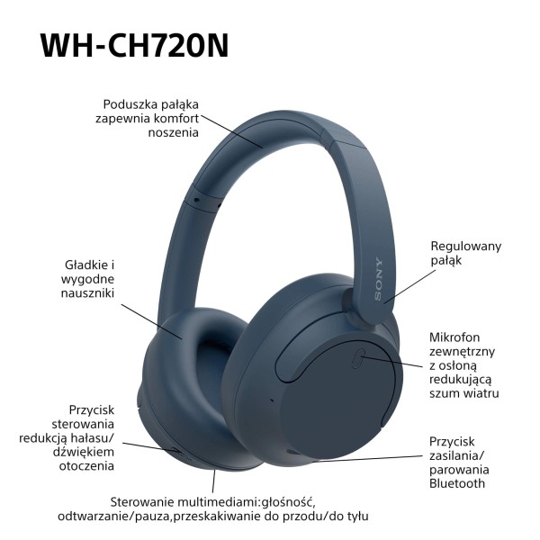 Бездротові навушники Sony WH-CH720N ANC Bluetooth 5.2 blue