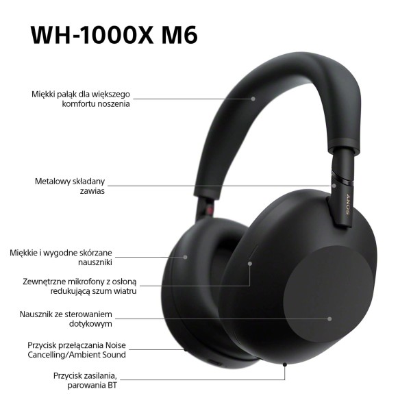 Бездротові навушники Sony WH-1000XM6 ANC Bluetooth 5.3 black