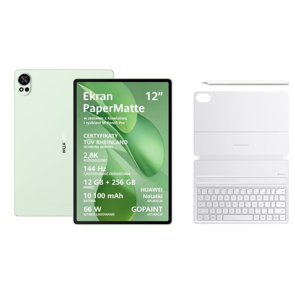 Планшет Huawei MatePad PaperMatte Edition 12X 2025 12" 12/256 ГБ Wi-Fi зелений + стилус M-Pencil Pro + біла клавіатура