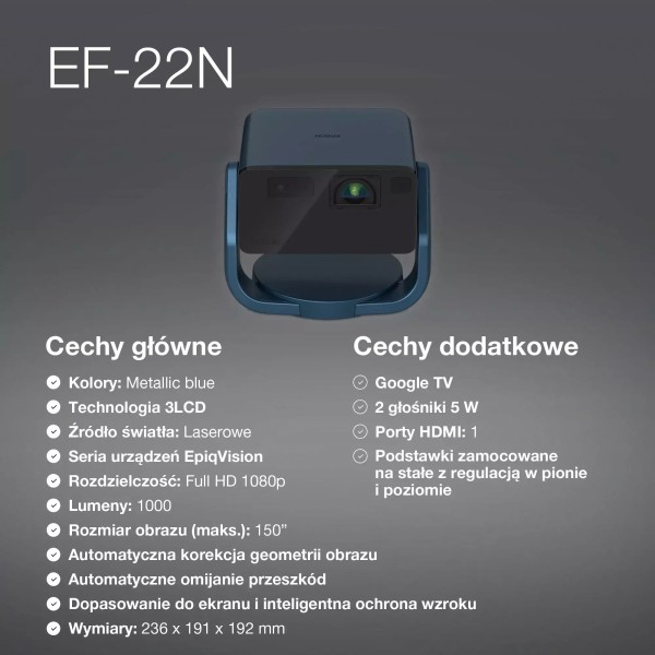 Epson EF-22N Laser 3LCD Full HD проектор Google TV