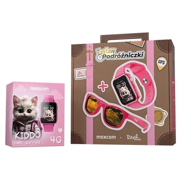 Розумний годинник Maxcom FW59 Kiddo LTE рожевий + окуляри Real Shades