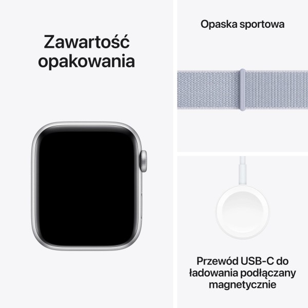 Смарт-годинник Apple Watch SE GPS + Cellular, алюмінієвий сріблястий корпус 44 мм, спортивний ремінець хмарно-синього кольору