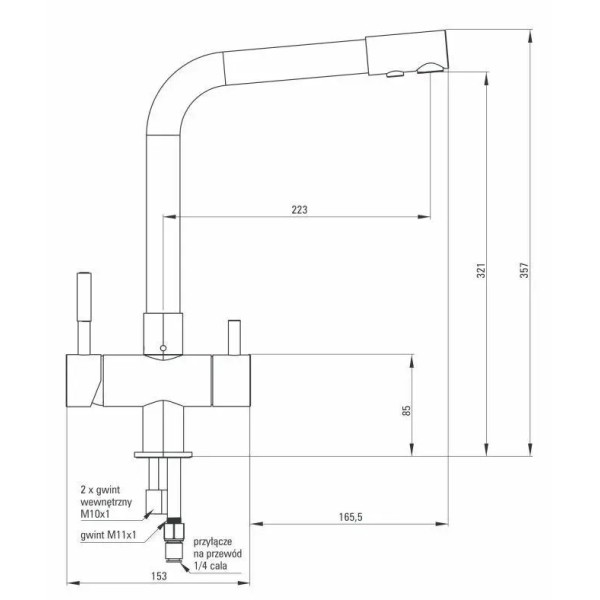 кран високого тиску, кран з підключенням до фільтра, керамічна головка, поворотний вилив, аератор, рухомий двострумовий вилив з перемикачем
