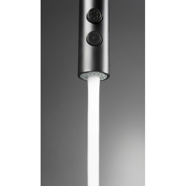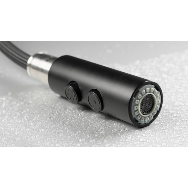 аератор, керамічна головка, перемикач води (стандарт/душ), висувний двострумовий вилив, зворотний клапан