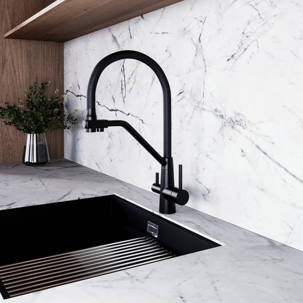 змішувач з підключенням для фільтра, керамічна головка, гнучкий вилив, функція фільтра води, висувний одноструминний вилив