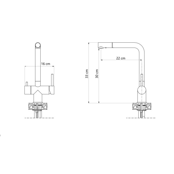 кран високого тиску, керамічна головка, поворотний вилив, аератор, висувний одноструменевий вилив