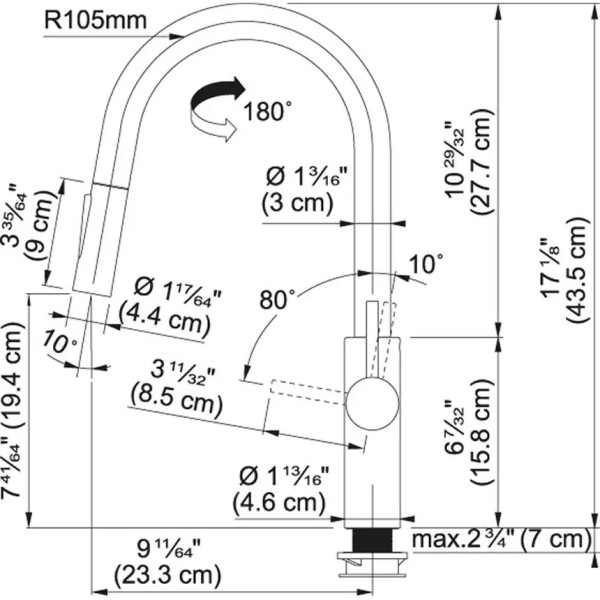 Змішувач Franke Pescara L Slide-In Pull-Out Spray Chrome