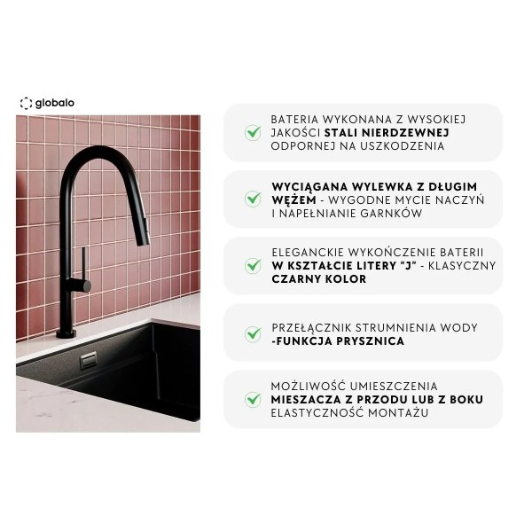 Змішувач Globalo Dervina 1.1 BL black керамічний