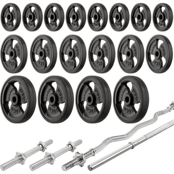 Комплект Marbo Sport MH9_151KG_KIER_G | Двостороння лава + регульовані стійки + лава Скотта + комплект грифів і гумових навантажень