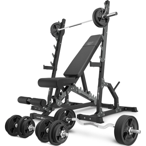 Комплект Marbo Sport MS24_2.0_113KG_G | Двостороння лава + багаторівневі стійки (2 шт.) + комплект грифів і гумових навантажень 113 кг
