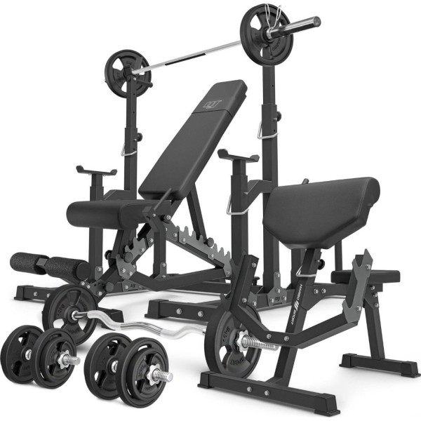 Комплект Marbo Sport MS5_2.0_83KG_G | Двостороння лава + регульовані стійки + лава Скотта ) з регульованою опорою + комплект грифів і гумових навантажень 83 кг