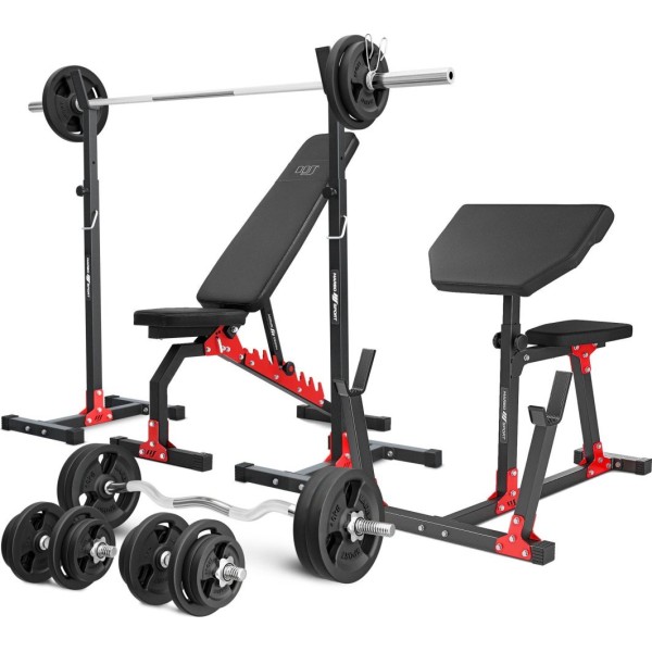Комплект Marbo Sport MH9_151KG_KIER | Двостороння лава + регульовані стійки + лава Скотта + комплект грифів і навантажень