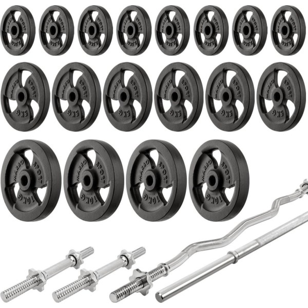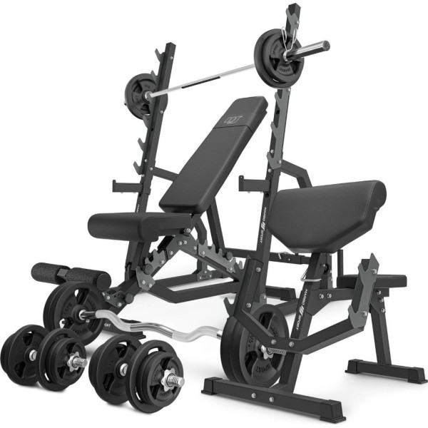 Комплект Marbo Sport MS6_2.0_113KG | Двостороння лава + стійки для штанги + лава Скотта з регульованою опорою + комплект грифів і навантажень 113 кг