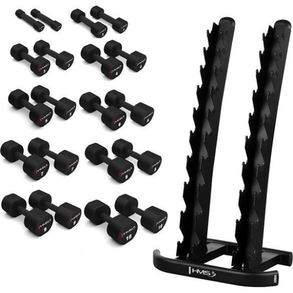 Набір гантелей з поліуретану HPT 2 x 1 - 10 кг (110 кг) + стійка STR37 HMS