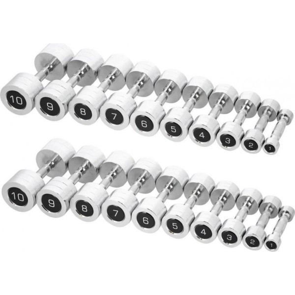 Хромовані гантелі HMS CHD, 20 шт. Різні типи навантажень у комплекті