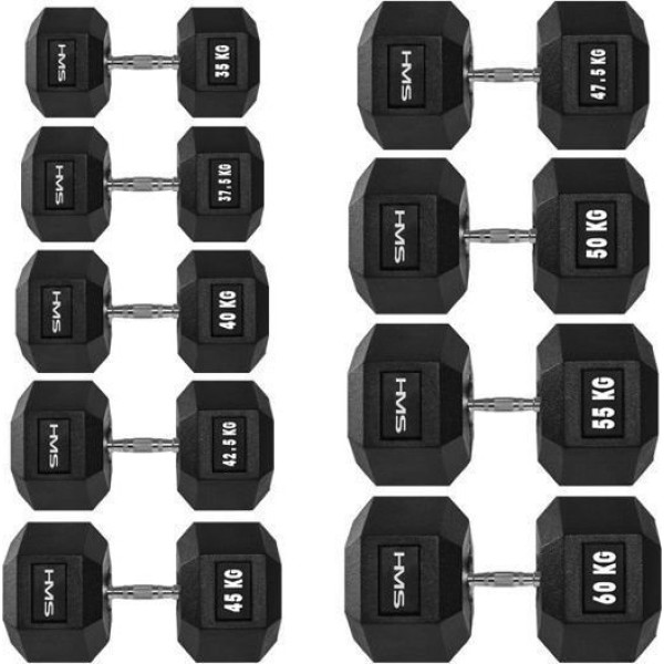 Гантелі HMS Hex Pro з гумовим покриттям, 18шт. Різні типи навантажень у комплекті