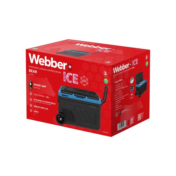 2 режими роботи: максимальне охолодження та режим ECO, мобільний додаток, Bluetooth, колеса та ручка, живлення 220-240 В та 12 В, живлення від USB, внутрішнє освітлення, система захисту акумулятора, термостат, вентилятор для швидкого та рівномірного охолодження, індикатор температури
