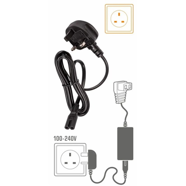 230-240 В 50/60 Гц та від розетки прикурювача автомобіля - 12 В, 24 В
