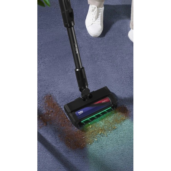 Безщітковий двигун Beko BLDC, шарнірна ніжка Beko ActiFlex™, щітка Beko EasyFlex™ на 180º, що легко маневрувати, контейнер Beko TrayClean™, який легко спорожнити, технологія всмоктування Beko PerformCyclone™