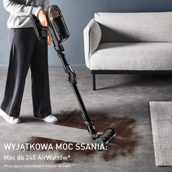 автоматичне регулювання сили всмоктування, головка щітки повертається на 180 градусів, легке спорожнення контейнера, легке зняття щітки з рулону, можливість заряджання виробу, підвішеного на стіні, можливість підвішування на стіну, індикатор очищення фільтра, знімний акумулятор, визначення типу поверхні для регулювання сили всмоктування