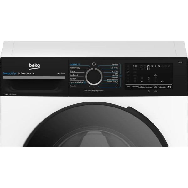 Барабан Beko AquaWave, зменшення втрат прального засобу Beko AquaFusion, енергозбереження Beko EnergySpin, парове освіження/розгладжування Beko SteamTherapy, парове прання Beko Steam Cure, безщітковий двигун Beko ProSmartInverter, система видалення плям Beko StainExpert