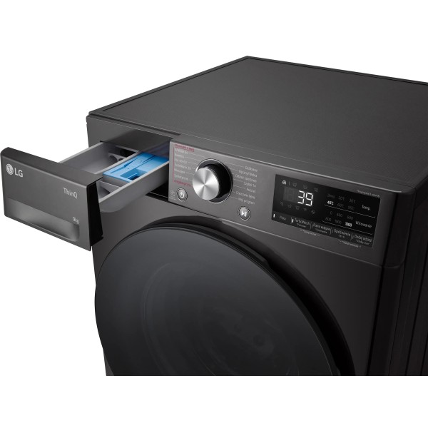 Програма LG Smart ThinQ, автоматичне налаштування сушильної машини LG Smart Pairing відповідно до циклу прання, діагностика LG Smart Diagnosis, регулювання руху барабана LG 6Motion Direct Drive відповідно до завантаження, оптимальні рухи прання LG AI DD™, швидше прання LG TurboWash™