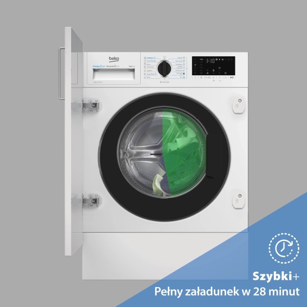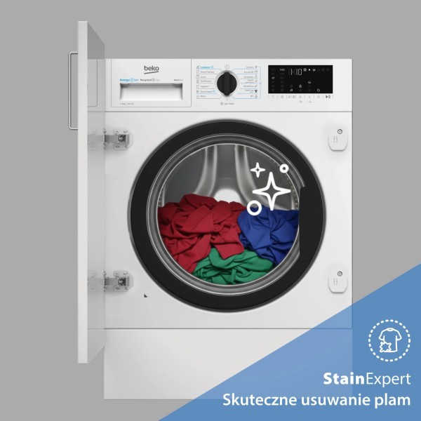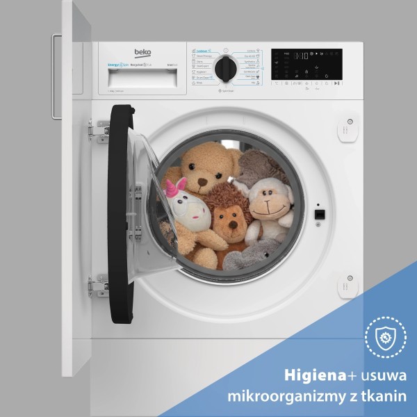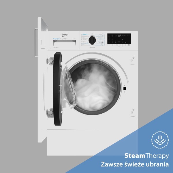 AquaFusion, автоматичне прання, автоматичний контроль ваги, барабан Beko AquaWave, очищення барабана, звукове підтвердження обраної функції, високотехнологічний нікельований нагрівач, контроль піни, контроль балансу, можливість додавання білизни під час циклу, можливість скорочення часу прання, графічна панель керування, описова панель керування, попереднє прання, рівномірний розподіл завантаження в барабані, безщітковий двигун, StainExpert, Старт/Пауза з можливістю додавання білизни, SteamCure