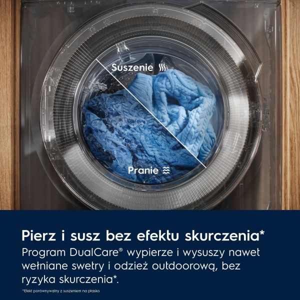 DualCare System, функція паузи, контроль піни, меню польською мовою, можливість додавання білизни під час циклу, попереднє прання, програма «очищення барабана», програми прання парою, SensiCare System, інверторний двигун, SteamCare - згладжування парою, Time manager - повний контроль над час, вибір часу сушіння, вибір рівня сушіння, відображення часу до закінчення програми