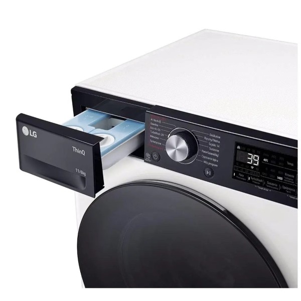 Оснащена технологією LG ThinQ: Ви можете керувати пральною машиною за допомогою смартфона, завантажувати спеціальні цикли прання та відстежувати витрати води та електрики. Інтелектуальна система визначення типу тканини AI DD здатна розпізнавати не тільки вагу, а й характеристики тканини, такі як щільність та м'якість, з точністю підбираючи оптимальний алгоритм прання. Технологія "6 рухів турботи" 6 Motion: інтенсивне прання - розгладжування, насичення, похитування, делікатне прання - базове обертання, крутіння, реверсивне обертання.