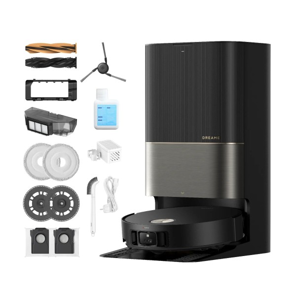 2 мочалки, 2 тримачі для накладок, 2 пакети, інгібітор накипу, інструмент для чищення, захист від щіток, засіб для миття підлоги, контейнер для пилу, шнур живлення, станція самоочищення