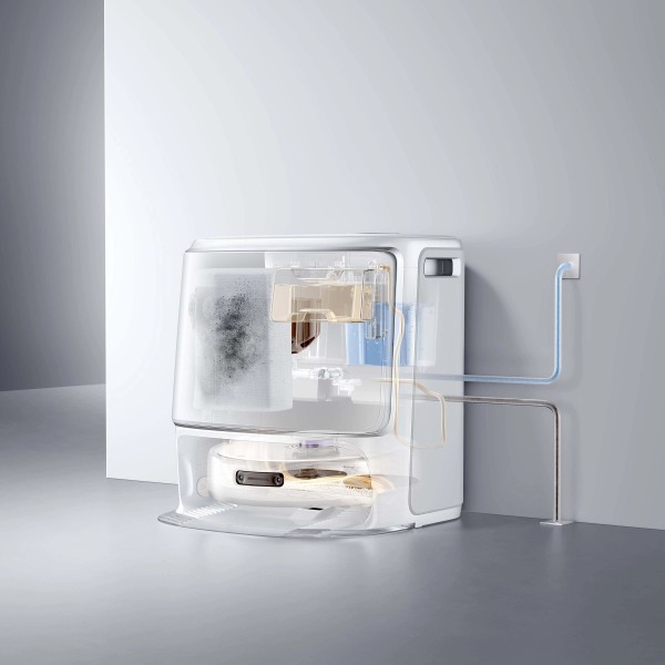 2 накладки для швабри, фільтр, кабель живлення, засіб для чищення підлоги, пилозбірник, станція самоочищення, мішок