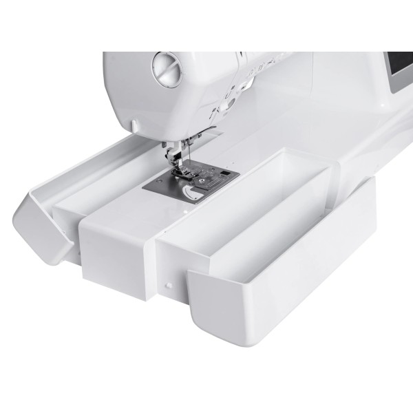 11 видів петлі, автоматичне пришивання петлі, автоматичне відключення після намотування нитки на шпульку, автоматична ниткорізка, літери, цифри та знаки, дзеркальне відображення, ручна ниткорізка, графічна інструкція на корпусі, світлодіодне підсвічування, строчка пам'ять, пам'ять для налаштування параметрів стібка, програмування послідовності стібків, кнопка старт/стоп, ручка для перенесення, регулювання натягу нитки, регулювання швидкості, вбудоване освітлення, вільна рука, пришивання гумок, високий підйом лапки, вишивка монограми, сенсорне дисплей
