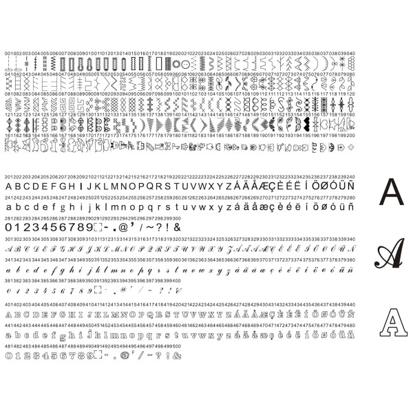 штопання, вишивка, збірка тканини, підшивка невидимого краю, підшивка тканини, шиття петель, стьобання, плісировка, шиття аплікацій, шиття ґудзиків, ручка для перенесення, ремонт тканини, верхня строчка, білизняне шиття, декоративне шиття, еластичне шиття, еластичне шиття, шиття застібка-блискавка, обробка країв, вишивка букв і цифр, зміцнювальна тканина, пришивання тканини