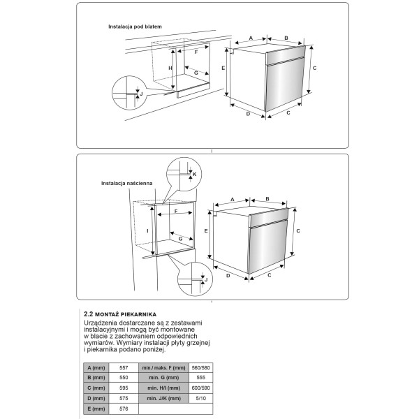 1 глибока полиця з листового металу, 1 решітка, 2 полиці з листового металу, інструкція з експлуатації польською мовою, гарантійний талон, шнур живлення