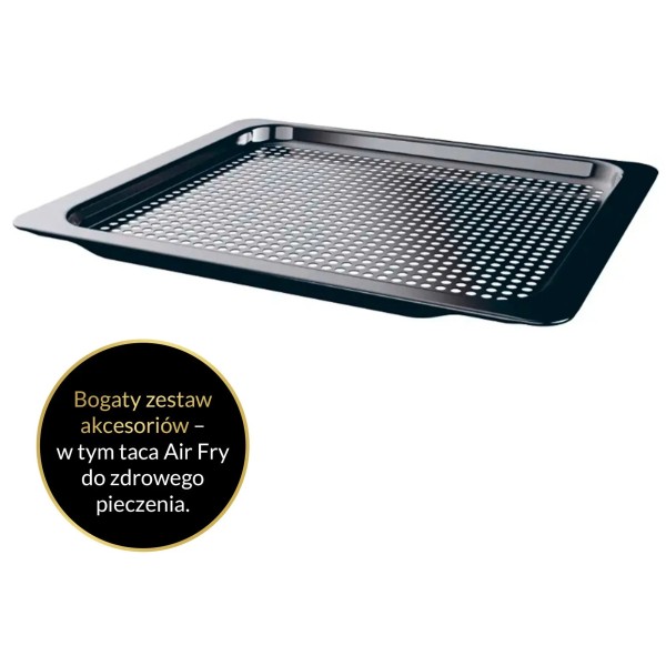 1 жерстяна полиця, 1 сітчаста полиця, деко AirFry, жаровня, телескопічні напрямні, датчик внутрішньої температури