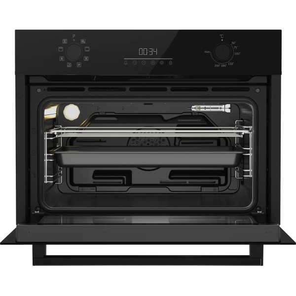 таймер, термостат, сигнал закінчення випічки, індикація тривалості програми, вентилятор, багаторівневе випікання, легке виймання скла, електронний сенсорний програматор
