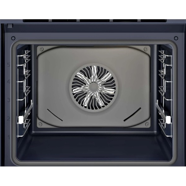 таймер, плавне закривання дверцят, термостат, сигнал закінчення випічки, індикація тривалості програми, вентилятор, багаторівневе випікання, знімні дверцята, легке знімання скла, електронний сенсорний програматор