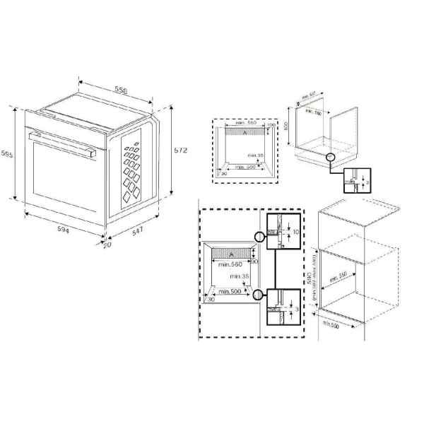 таймер, термостат, знімний резервуар для води, сигнал закінчення випічки, електронне регулювання температури, індикація тривалості програми, вентилятор, багаторівневе випікання, знімні дверцята, легке знімання скла, електронний сенсорний програматор