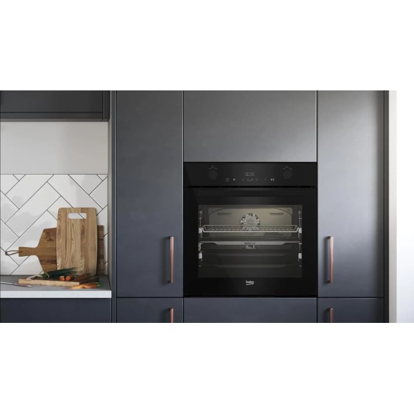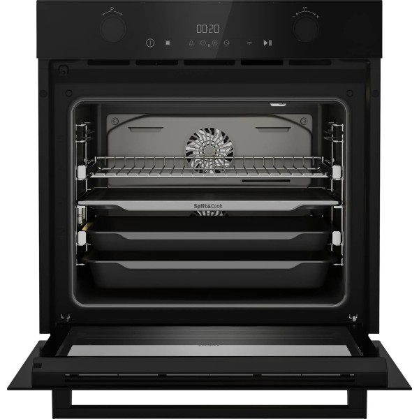 можливість поділу духової камери на дві незалежні частини Beko Split&Cook, Beko SimpleSteam очищення парою, рівномірний розподіл гарячого повітря Beko AeroPerfect, Beko SoftClose плавне закриття