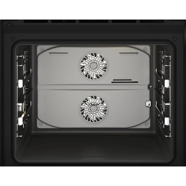 таймер, плавне закриття дверцят, термостат, сигнал закінчення випікання, електронне регулювання температури, вентилятор, багаторівневе випікання, відображення часу приготування та поточної програми, знімні дверцята, легкий демонтаж скла, підсвічування при відкриванні дверцят, поділ духовка на дві частини, електронний сенсорний програматор, 2 термоконтури, система периферійної вентиляції