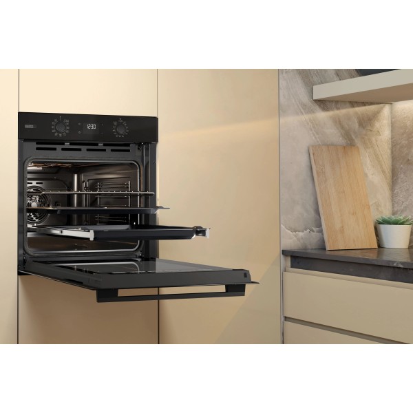 плавне закривання дверцят, відображення тривалості програми, автоматичні підказки температури, вентилятор, багаторівневе випікання, швидкий демонтаж телескопічних напрямних, знімні дверцята, легкий демонтаж скла