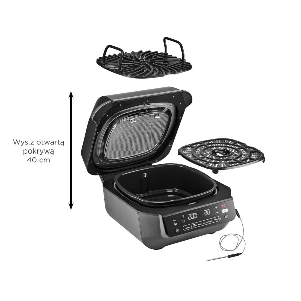 гарантійний талон, чаша, кришка, пластина для гриля, щітка для чищення, зонд для вимірювання температури всередині