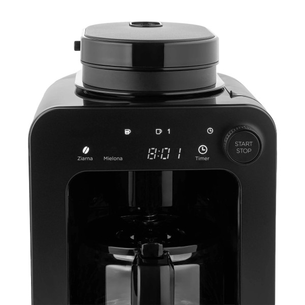 програмування часу початку, регулювання міцності кави, індикатор рівня води, дисплей, годинник