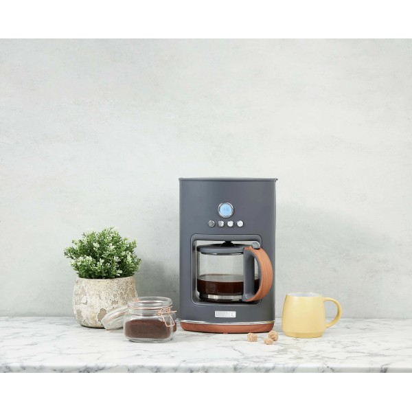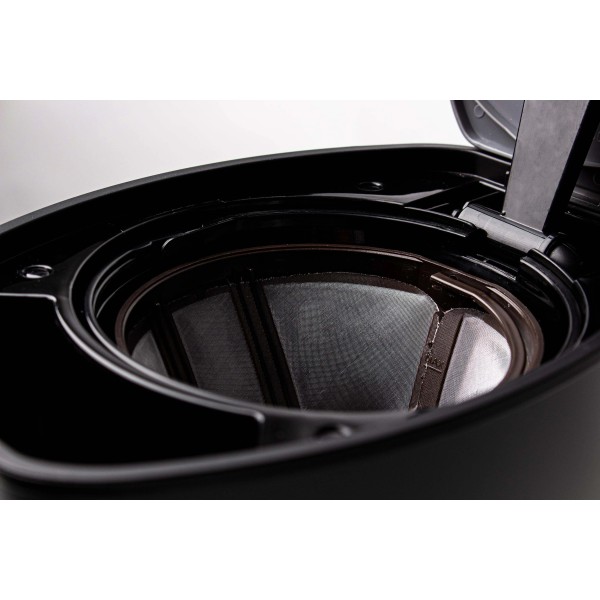 функція автоматичного підтримання тепла, крапельний замок, електронний програматор, функція підігріву, підігрів плити, місткість 10-15 чашок, програмування часу початку, регулювання міцності кави, дисплей