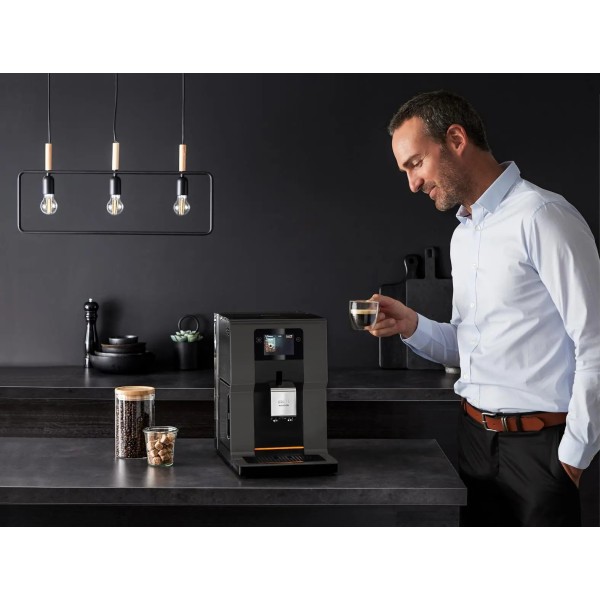 автоматичне очищення молочної системи після кожного приготування кави з молоком, автоматичне промивання після кожного включення, програма автоматичного очищення та видалення накипу, функція видалення накипу, функція статистики, сигналізація про необхідність видалення накипу, настройка жорсткості води