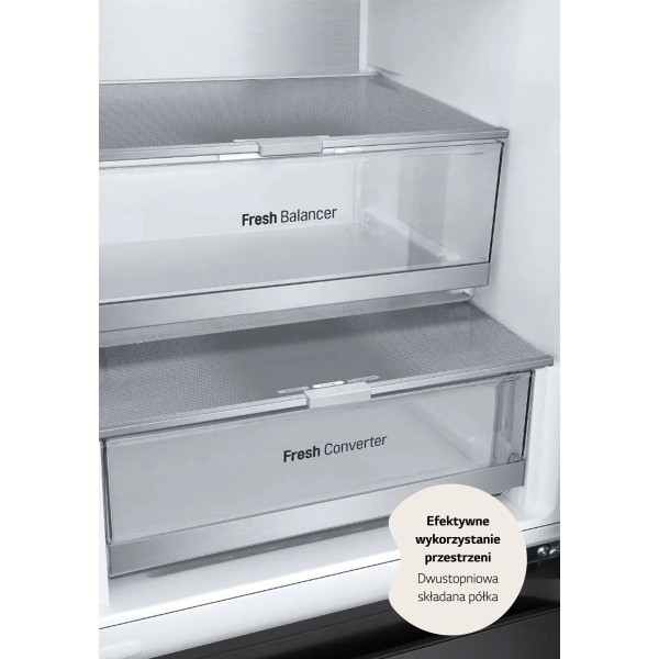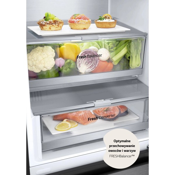 Ящик LG Fresh Balancer, камера свіжості LG Fresh Converter, охолоджуюча пластина LG Metal Fresh, рівномірне охолодження LG Door Cooling, захист свіжості LG LinearCooling