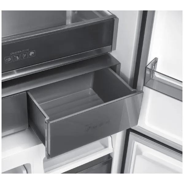 низькотемпературна камера, вентилятор, висувний ящик з незалежним контролем температури, підсвічування морозильної камери, світлодіодне підсвічування, сенсорна панель управління, сталева поверхня всередині холодильника